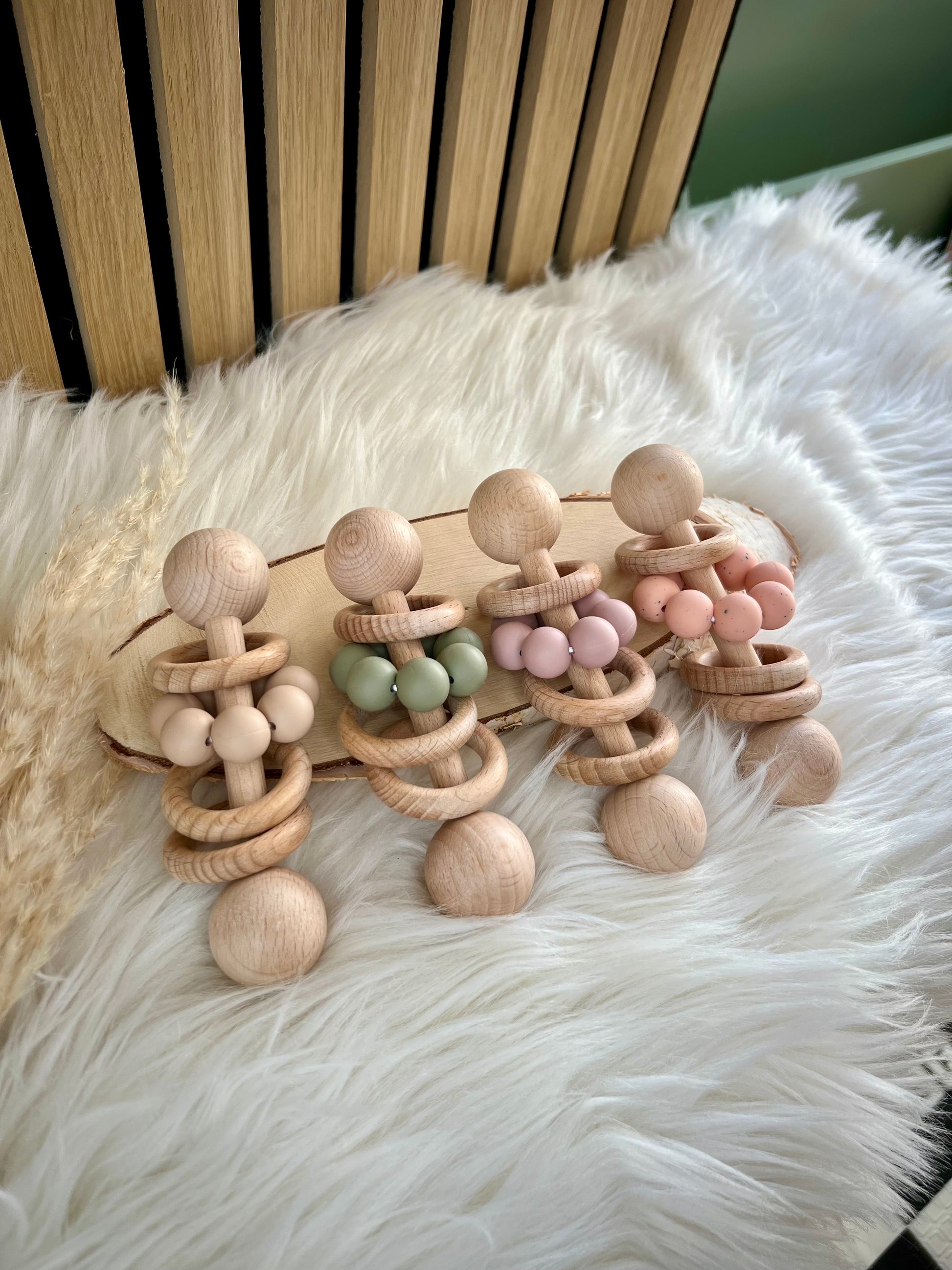 Handgemachte Stabrassel aus Holz – personalisierbar & sicher für kleine Hände