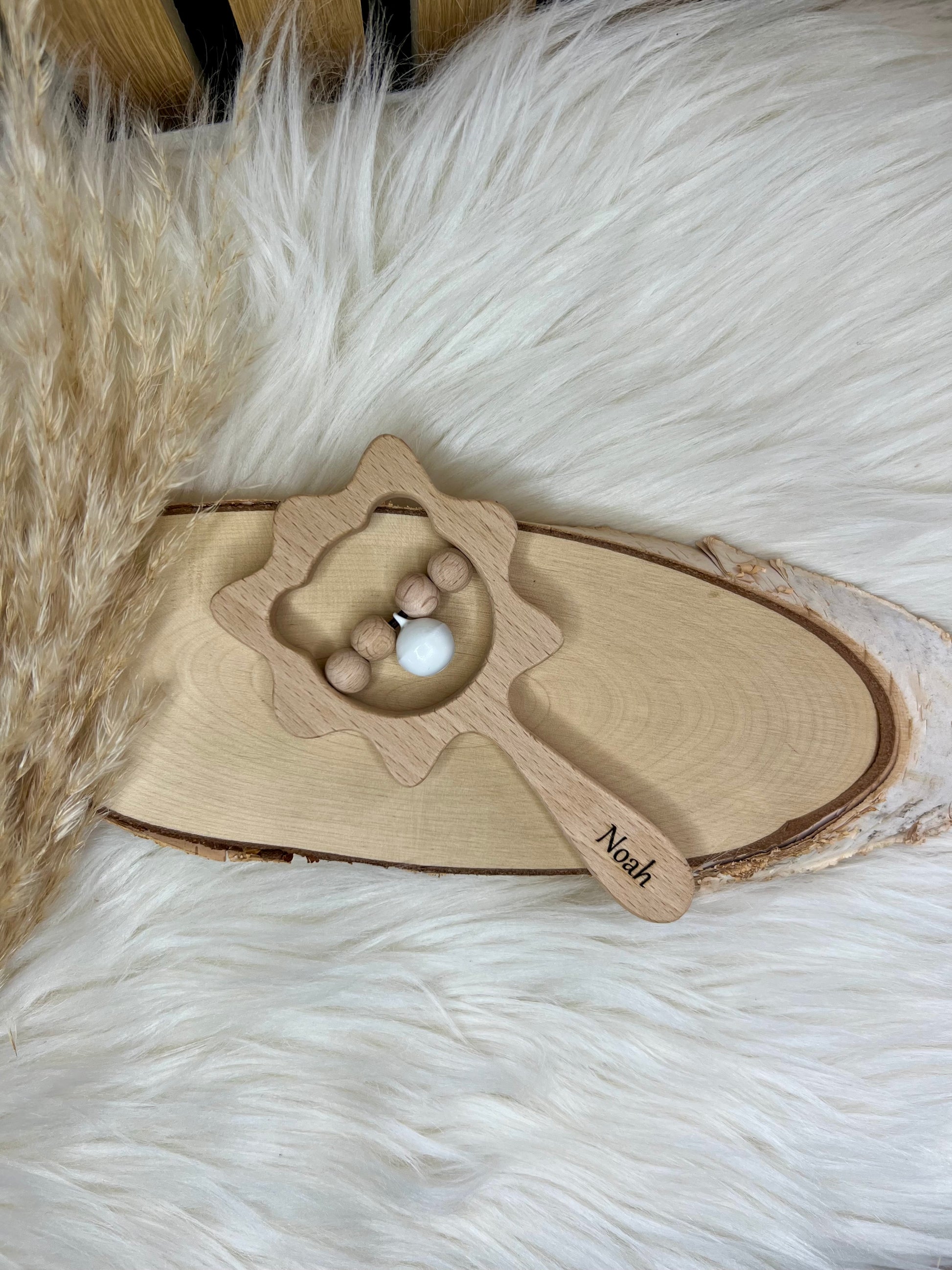 Ob als dekorativer Begleiter im Kinderzimmer oder als täglicher Spielkamerad – diese Holzrasseln machen jedes Babyfoto noch süßer. Dank der Gravur trägt die Rassel ein Stück Persönlichkeit, das man nie wieder abgeben möchte.