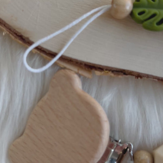 Personalisierte Schnullerkette „Jakob“ in Natur & Grün-Beige