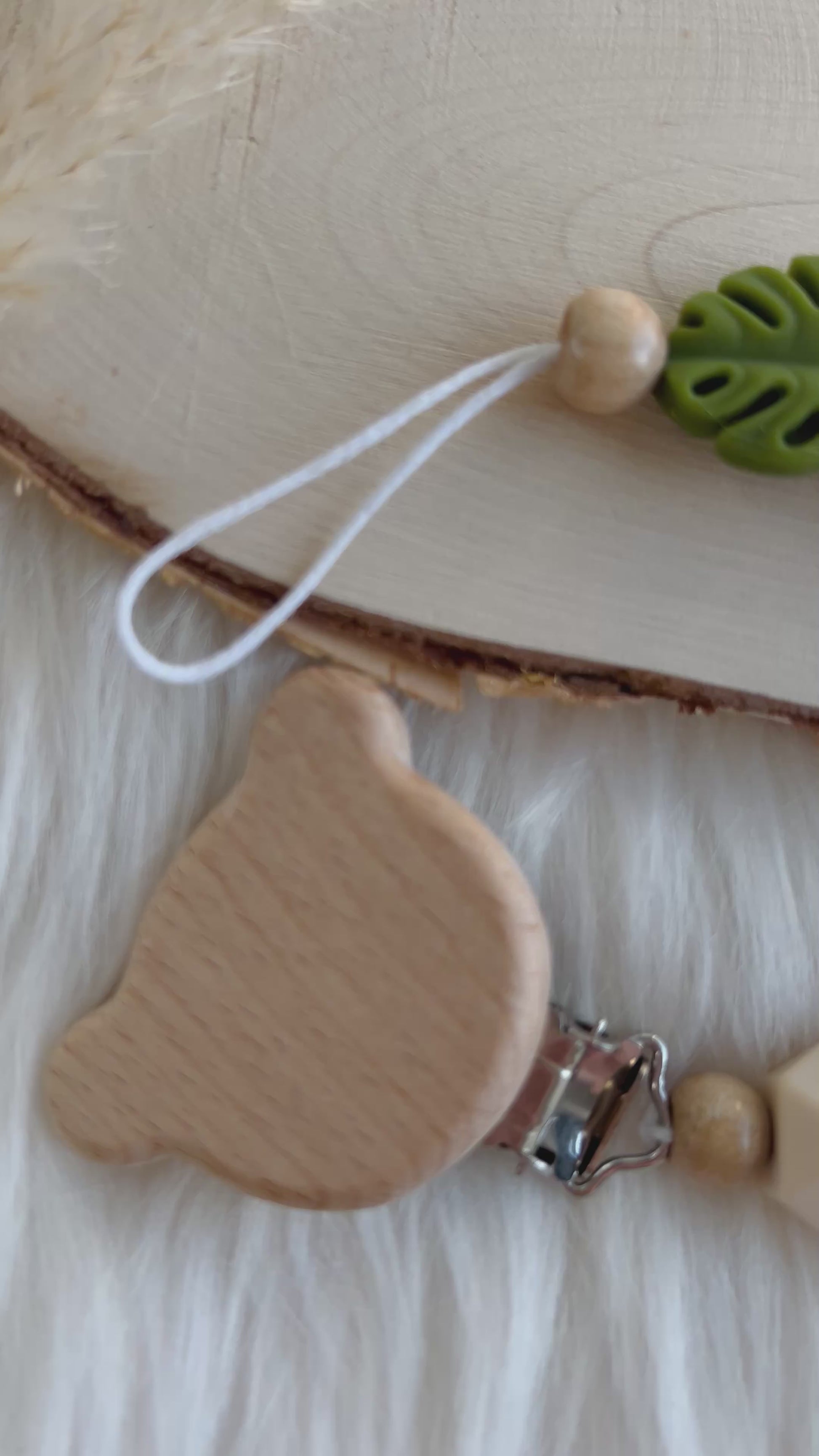 Diese handgefertigte Schnullerkette im modernen Natur- und Grünton-Design ist ein stilvolles und praktisches Accessoire für Babys. Die liebevolle Kombination aus unbehandeltem Holz, gehäkelten Baumwollperlen, hochwertigen Silikonperlen und einem naturbelassenen Holzclip macht diese Kette zu einem wunderschönen täglichen Begleiter.
